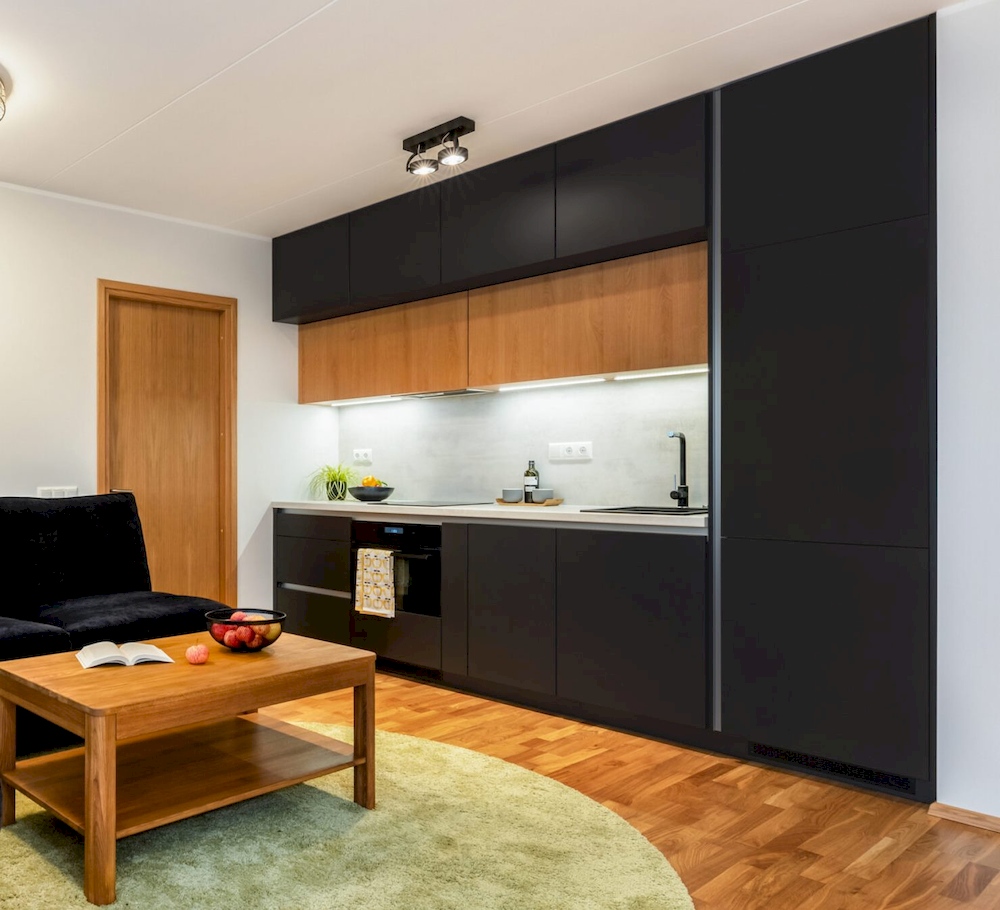 Шкаф с со стеклянными дверями в чёрном профиле с подсветкой «Модель 10»