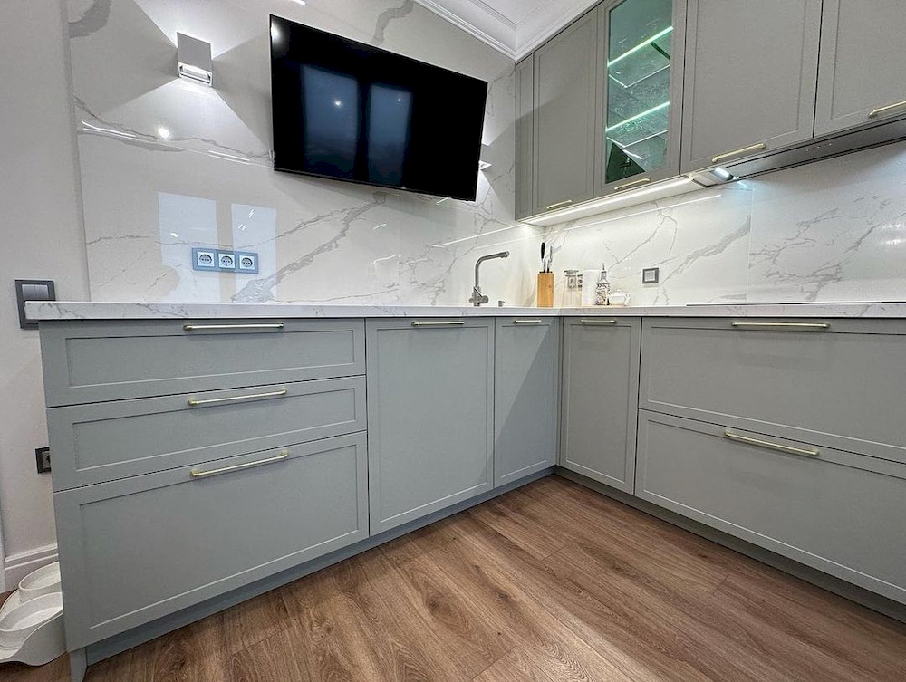 Угловая белая кухня с рифленными фасадами «Модель 953»