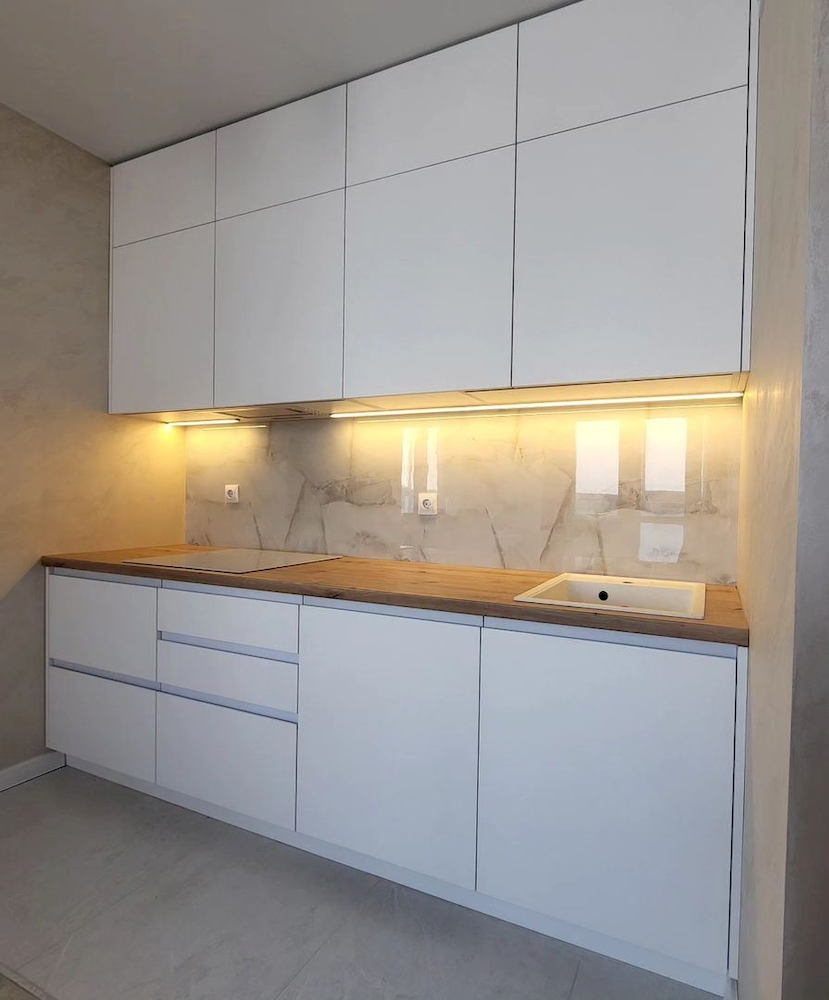 Прямая кухня с двухуровневыми шкафами «Модель 818»