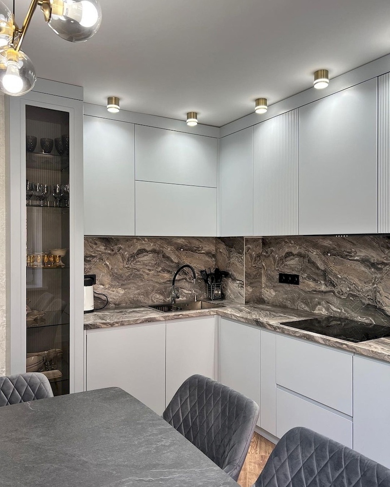 Угловая белая кухня с рифленными фасадами «Модель 953»