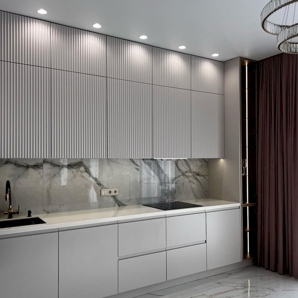 Кухня белый глянец рифлеными фасадами «Модель 646»