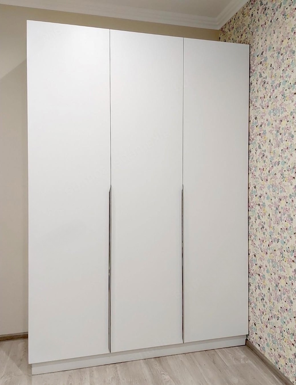 Высокий трехдверный минималистичный белый шкаф «Модель 617»