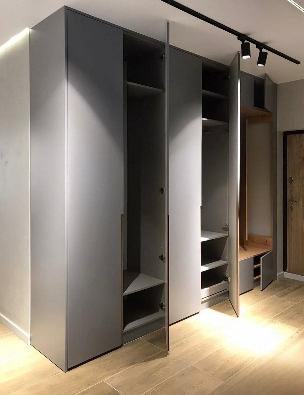 Встроенная прихожая под заказ серого цвета из МДФ «Модель 636»