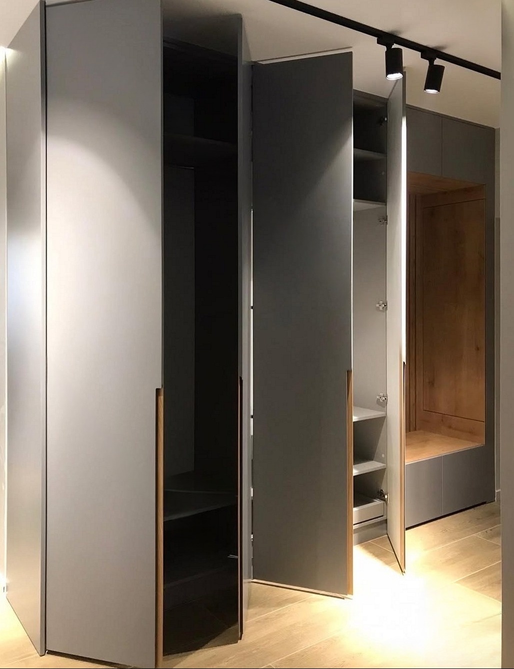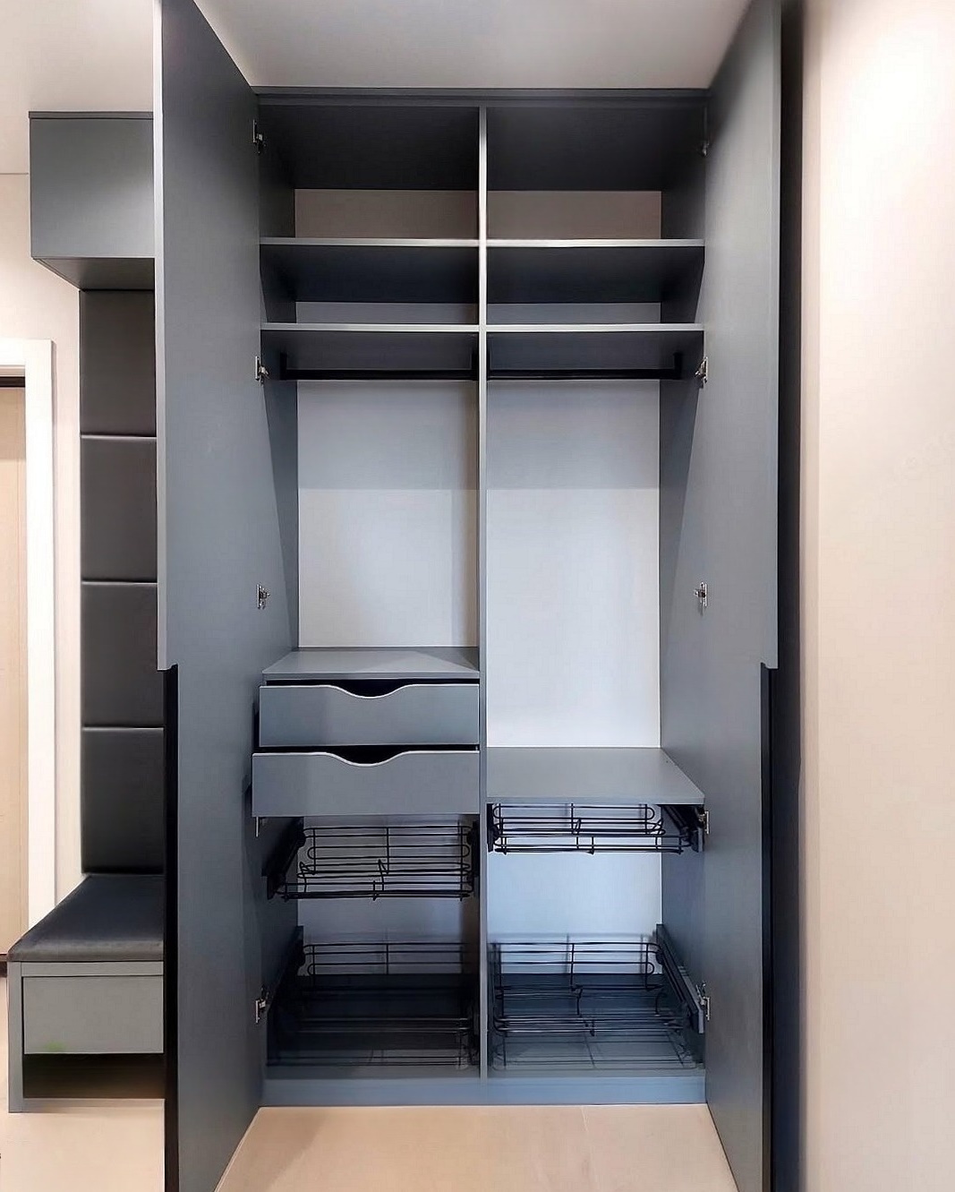 Распашной шкаф под заказ серого цвета с открытой секцией «Модель 643»