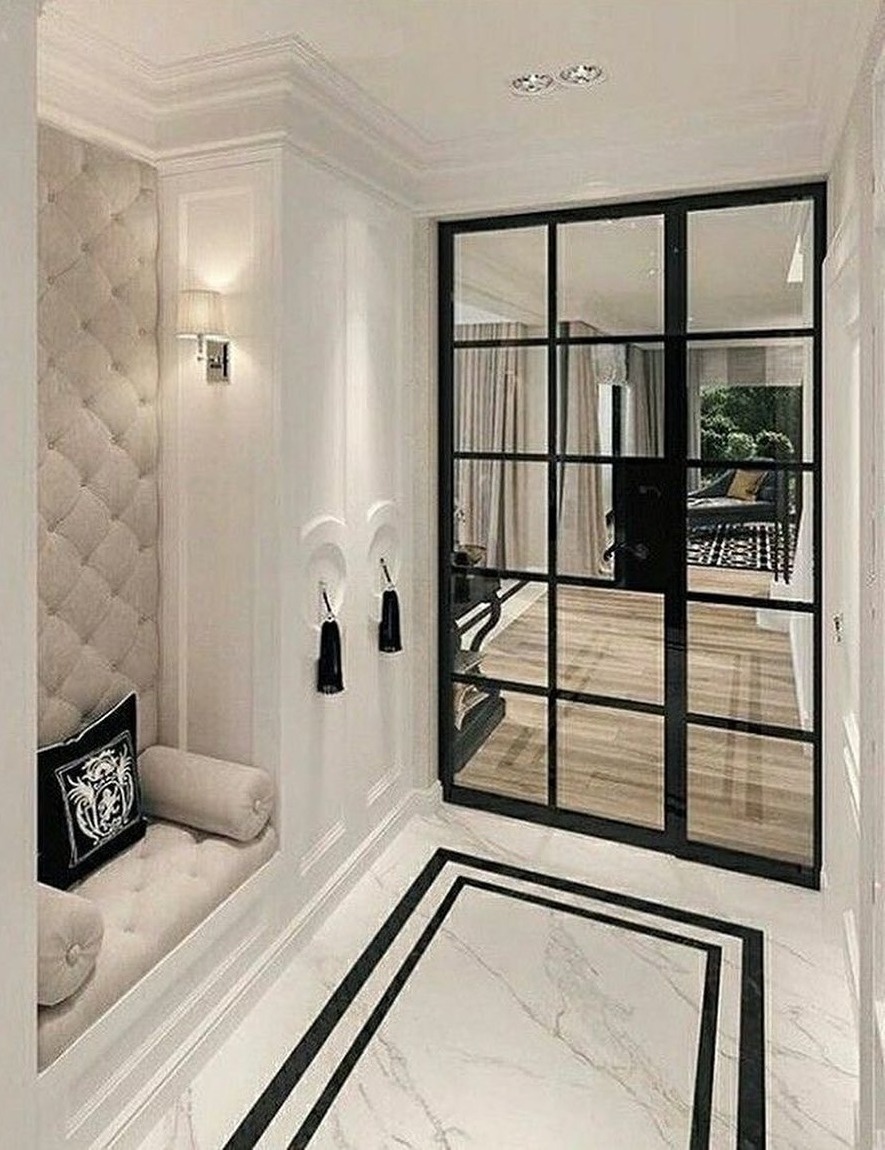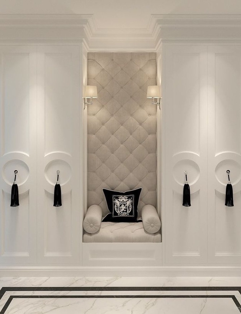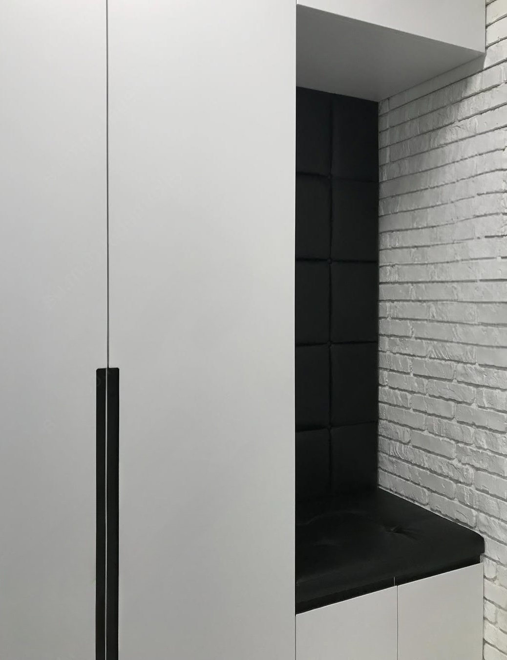 Черно-белая прихожая с мягкой банкеткой и вешалкой «Модель 647»