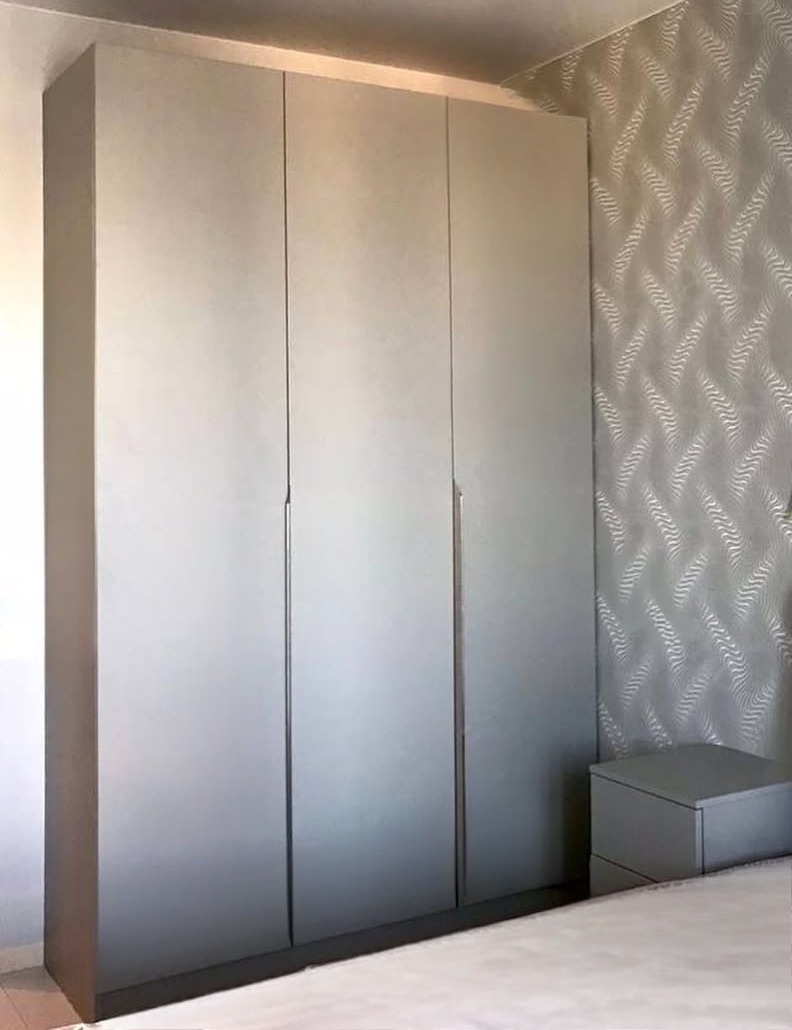 Серый трехдверный шкаф в стиле минимализм «Модель 651»