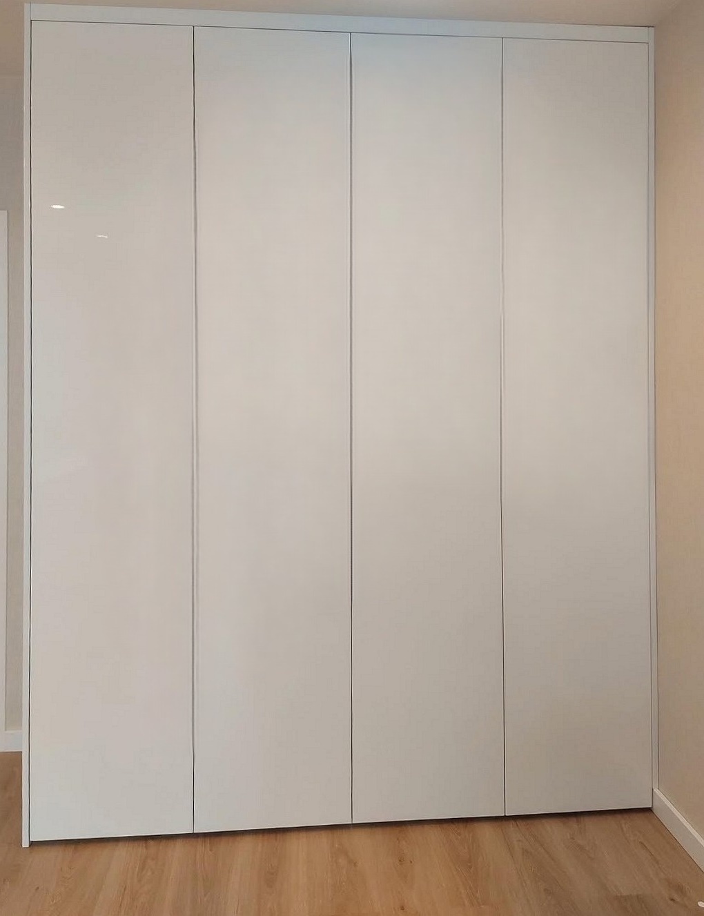 Встраиваемый белый шкаф с фрезеровкой в спальню «Модель 619»