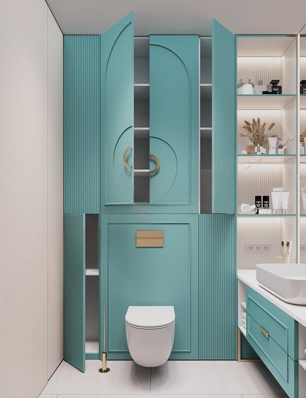 Зеленый встроенный шкаф над инсталляцией «Модель 947»
