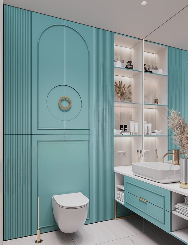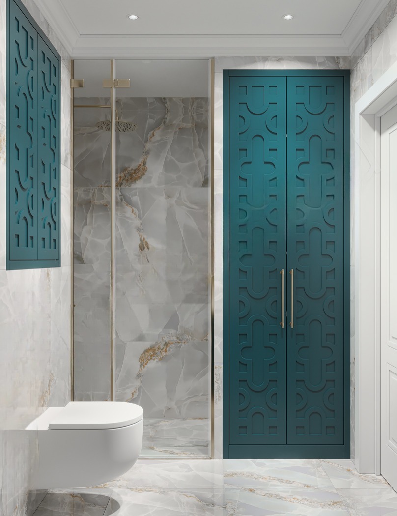 Встраиваемые шкафы и тумба с фрезеровкой в ванную «Модель 968»