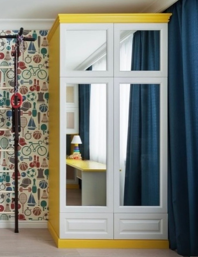 Яркий шкаф с зеркальными дверями МДФ в детскую «Модель 870»