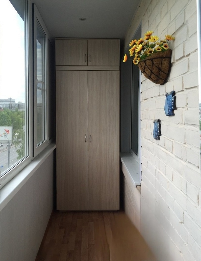 Комбинированный встроенный шкаф из ЛДСП на балкон «Модель 981»