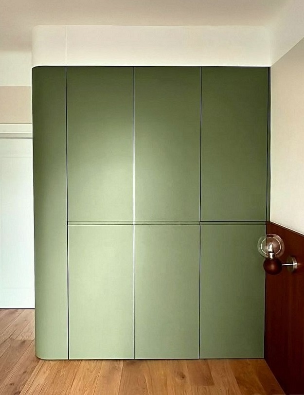 Распашной шкаф зеленого цвета из МДФ с фрезеровкой «Модель 1209»