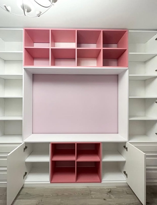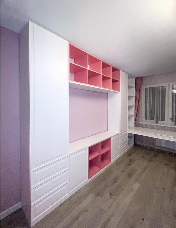 Широкий распашной шкаф с нишей под тв для девочки «Модель 1029»