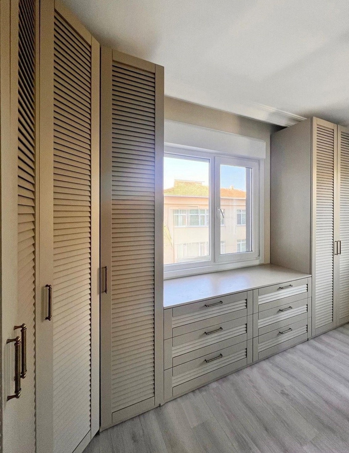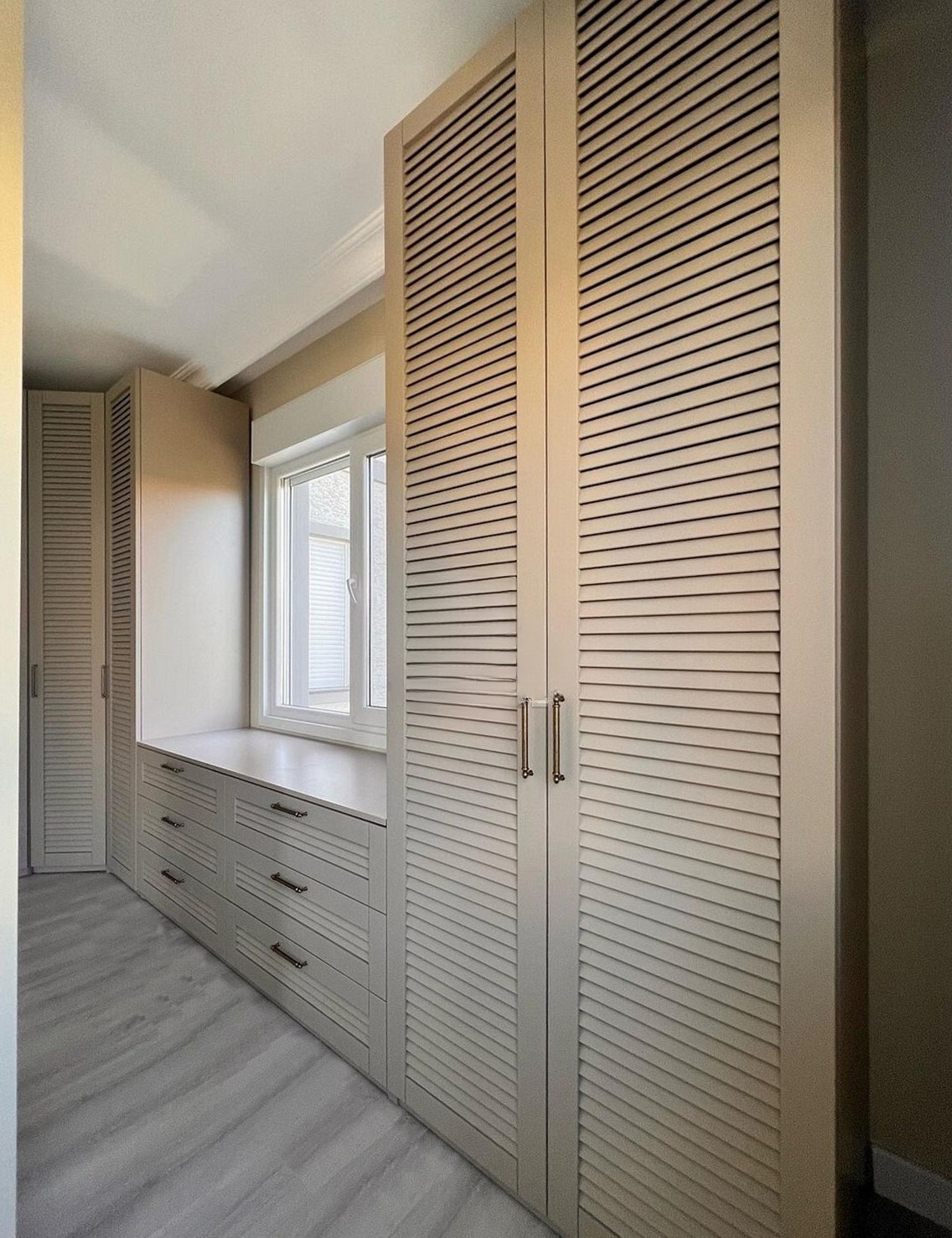 Широкий жалюзийный распашной шкаф вокруг окна «Модель 1309»