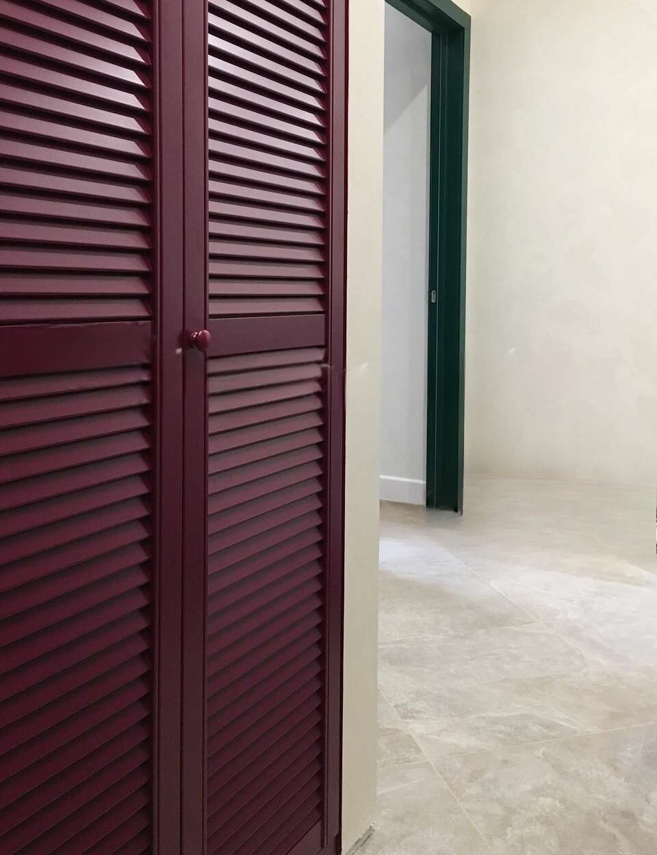 Встроенный трехдверный жалюзийный шкаф с антресолью «Модель 1342»