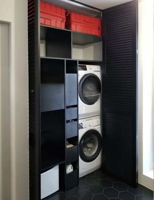 Черный шкаф с жалюзийными дверями для постирочной комнаты «Модель 1099»
