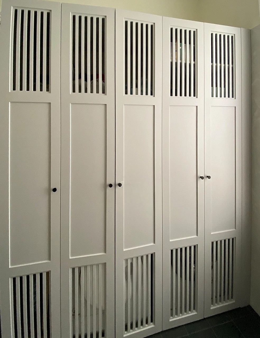 Жалюзийный шкаф с дверями-книжка в постирочную «Модель 1082»