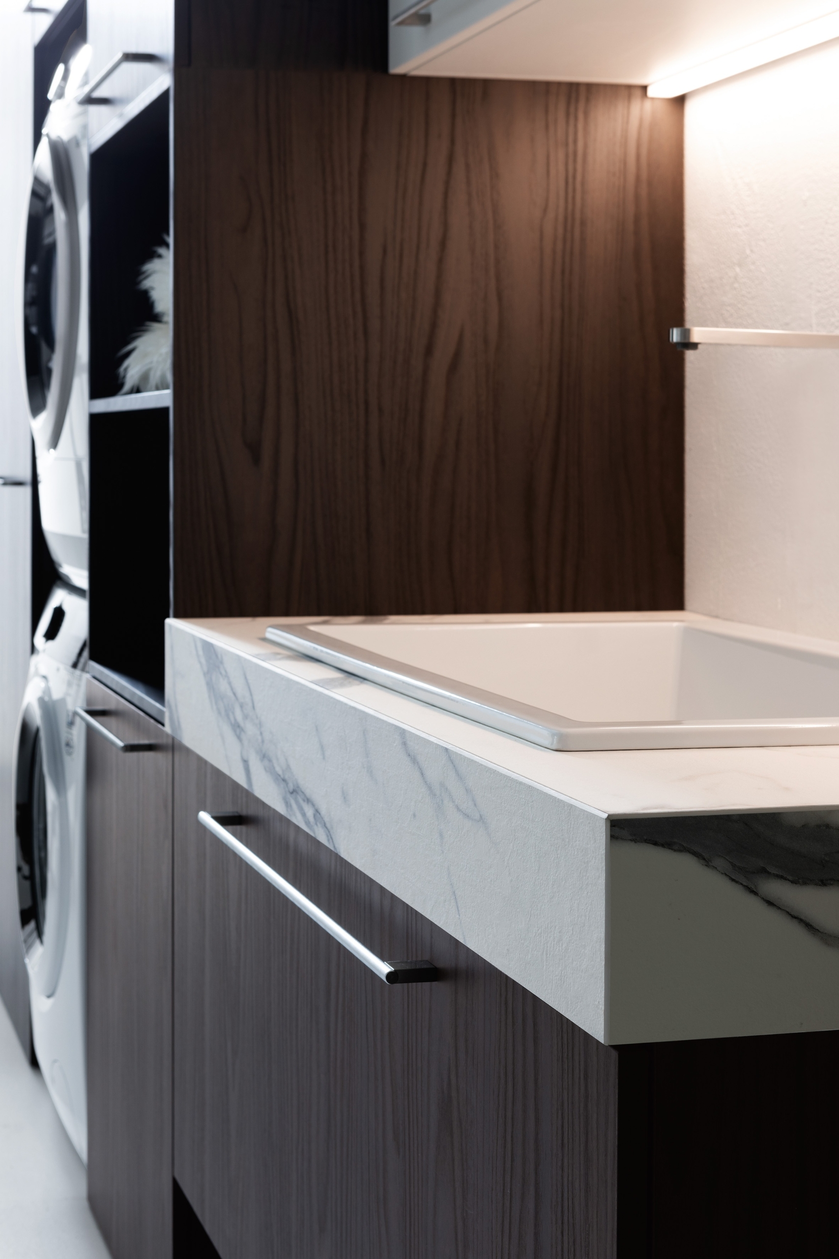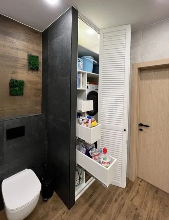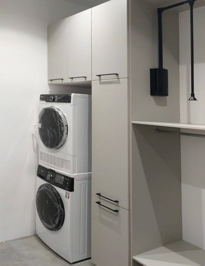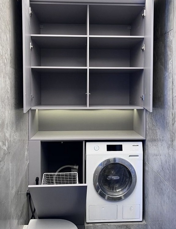 Встроенная мебель серого цвета для постирочной комнаты «Модель 1102»