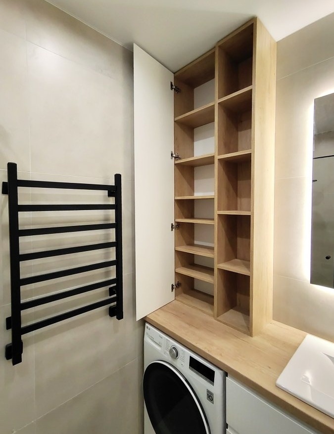 Встроенный шкаф с нишей и стеллажом в постирочную «Модель 1108»