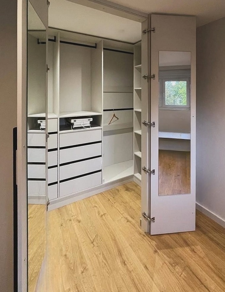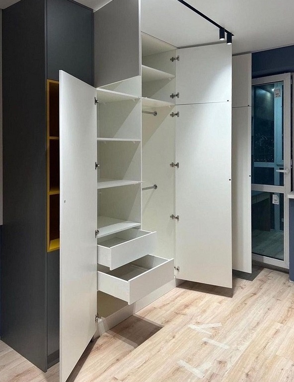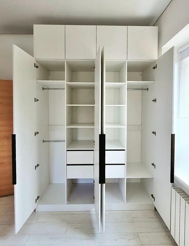 Белая встроенная гардеробная с распашными дверями «Модель 143»