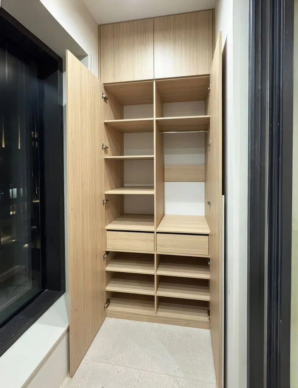 Встроенный шкаф в нишу с открытыми полками «Модель 136»