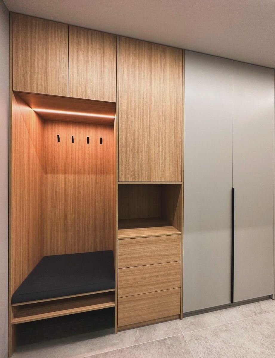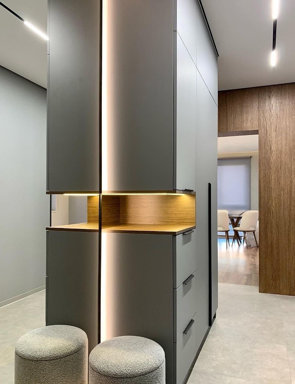 Встроенный шкаф с антресолями и подсветкой в прихожую «Модель 157»