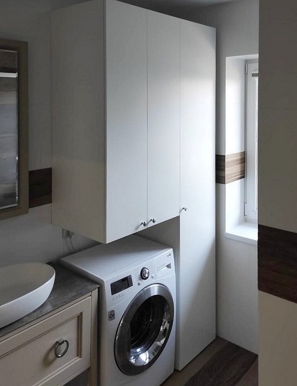 Распашной шкаф для санузла под стиральную машину и сушку «Модель 125»
