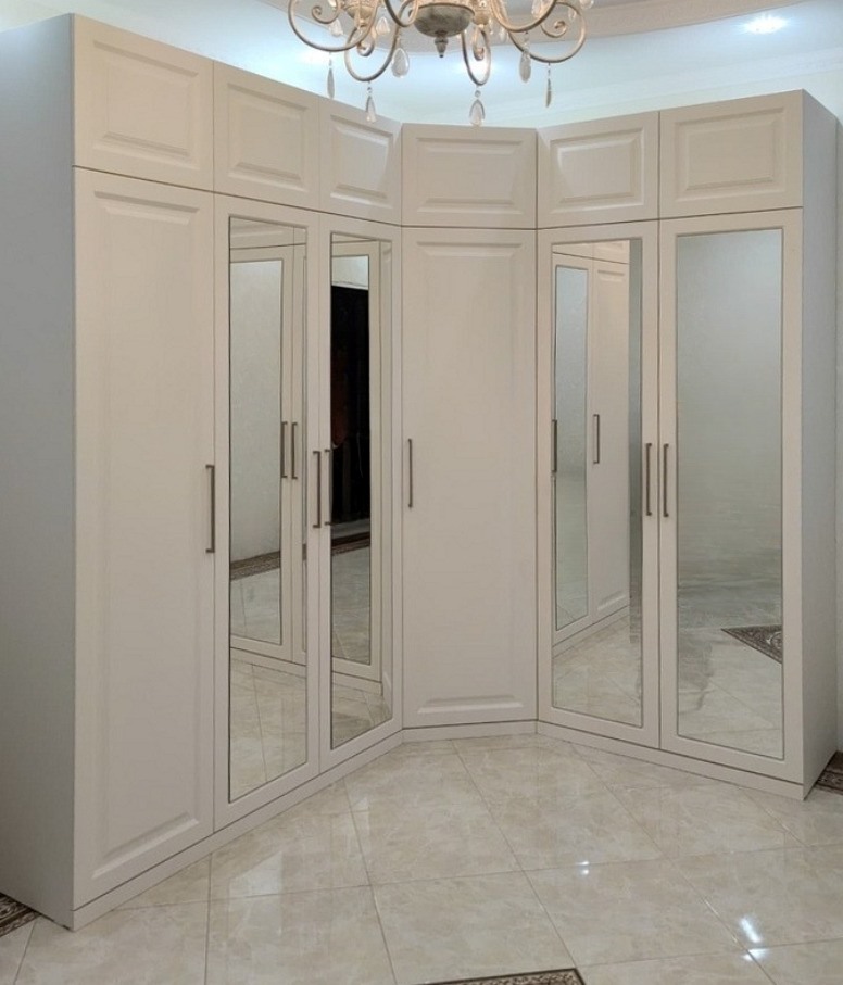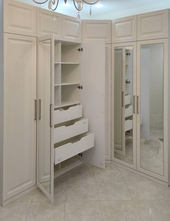 Угловой шкаф из МДФ с распашными зеркальными дверями «Модель 133»