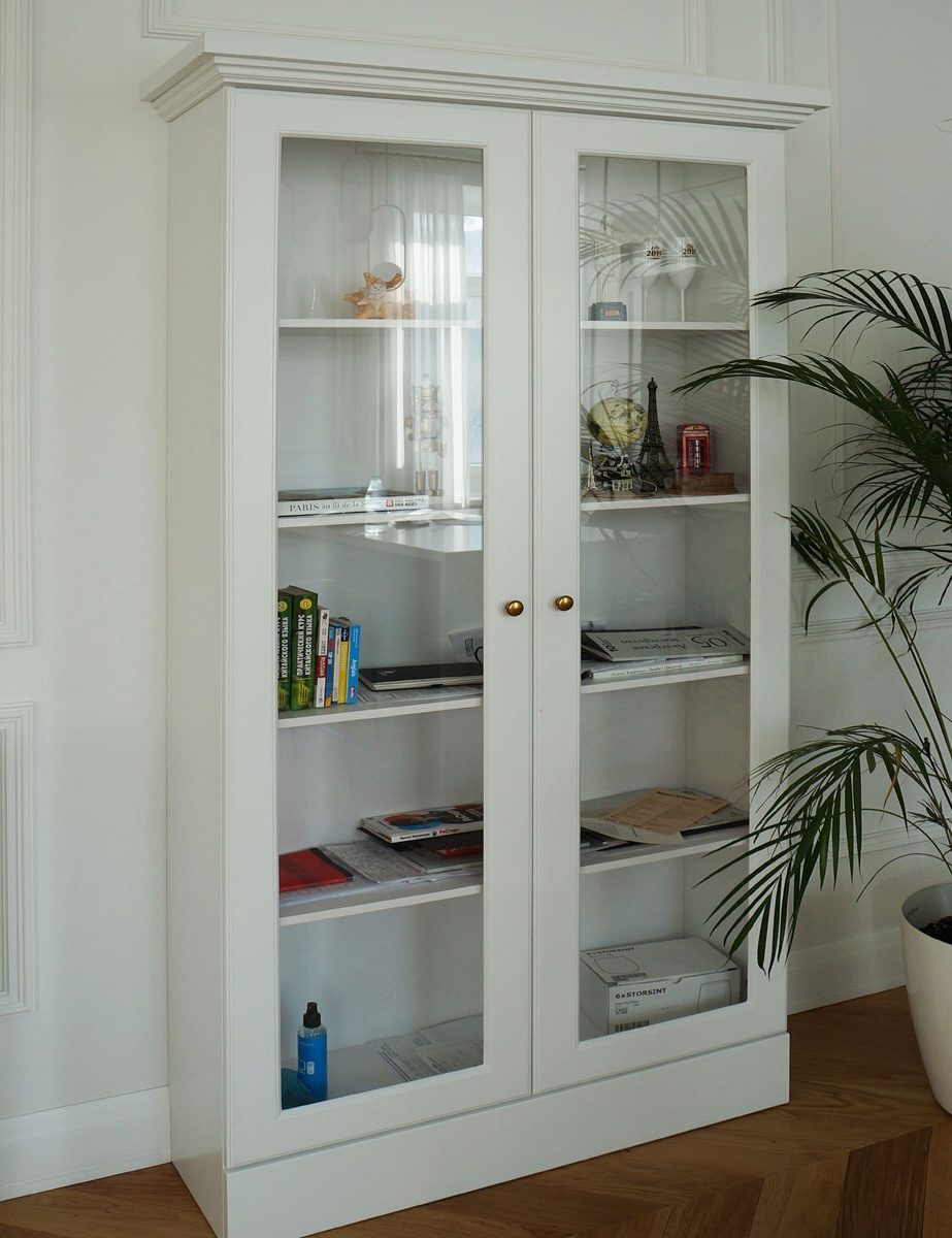 Шкаф белого цвета со стеклянными дверями в библиотеку «Модель 1120»
