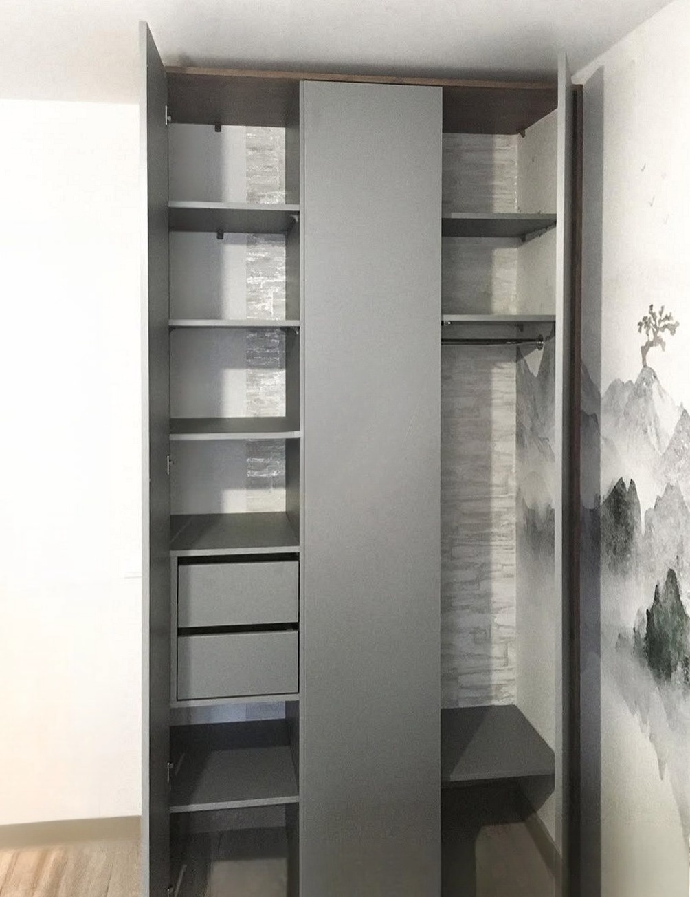 Встроенный шкаф серого цвета в спальню «Модель 100»