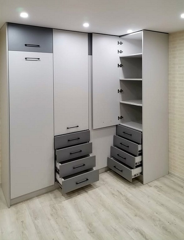 Серый угловой шкаф ЛДСП с комодом на заказ «Модель 823»