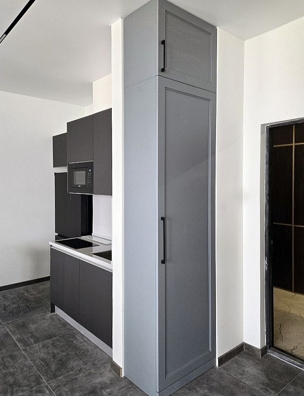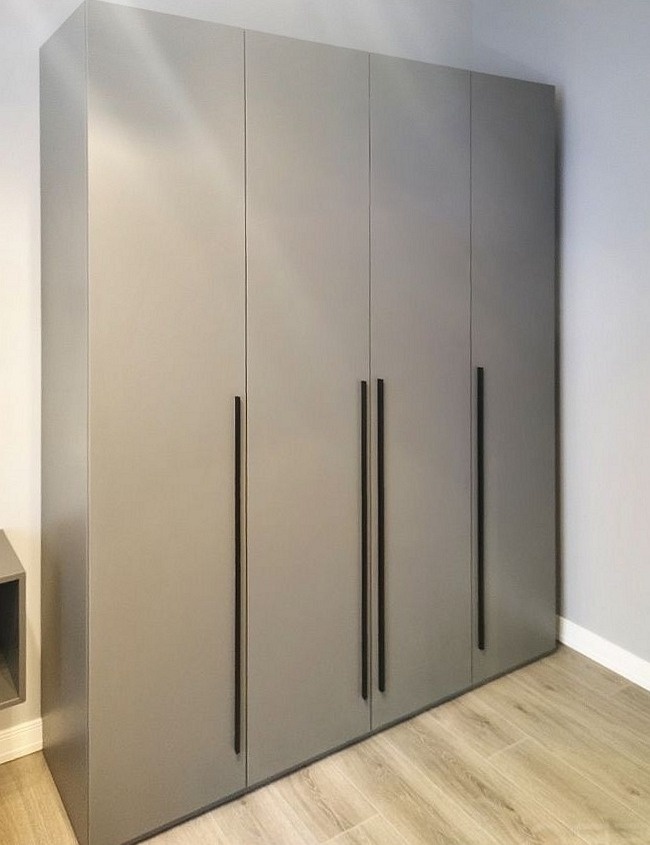 Серый распашной шкаф с интегрированными ручками «Модель 1220»