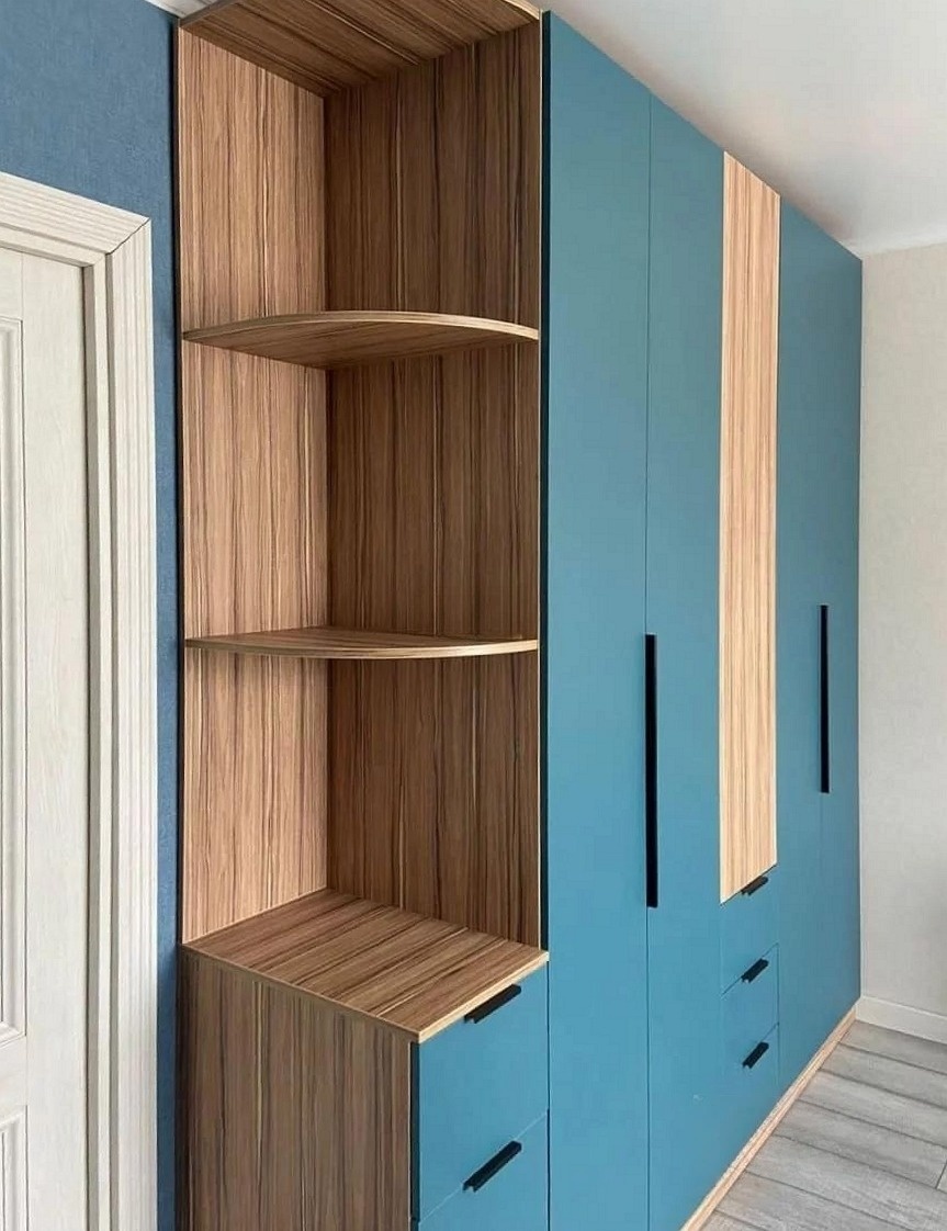 Встраиваемый синий шкаф вокруг кровати «Модель 1208»