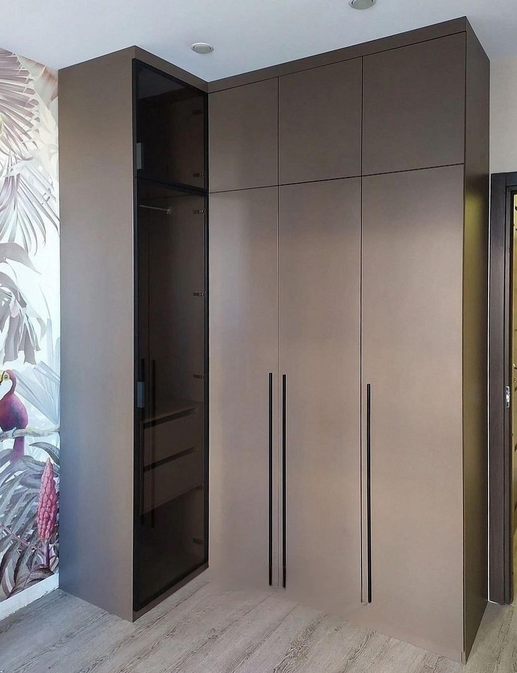 Угловой распашной шкаф коричневого цвета «Модель 1228»