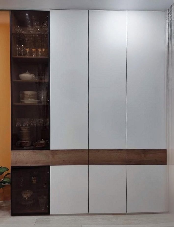 Белый шкаф под потолок с боковой витриной «Модель 281»