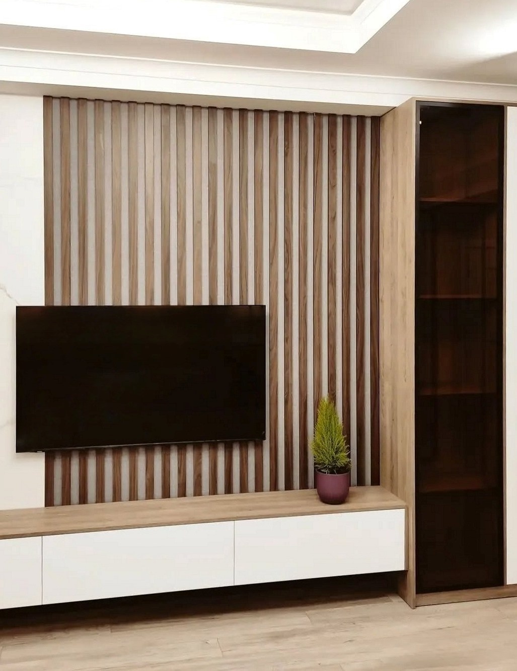 Белый шкаф в гостиную с местом для тв и комодом «Модель 272»