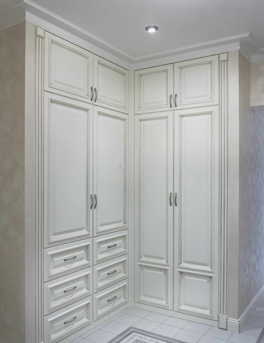 Белый шкаф в классическом стиле с фрезерованными дверями «Модель 221»
