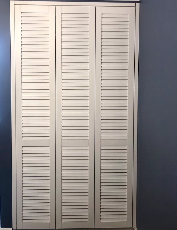 Распашной шкаф в комнату вокруг двери с жалюзийными дверями «Модель 124»