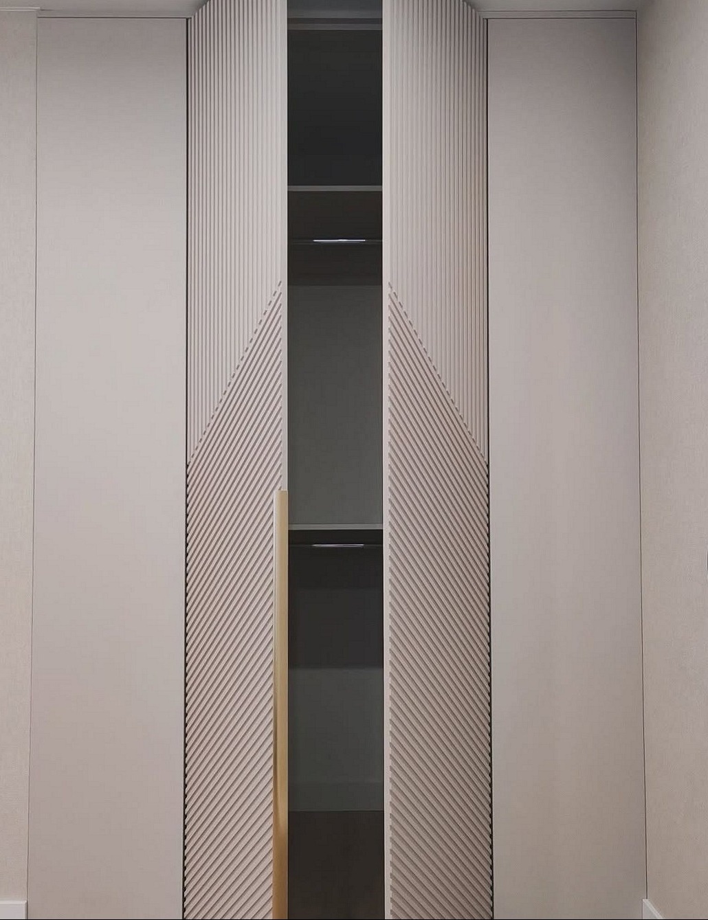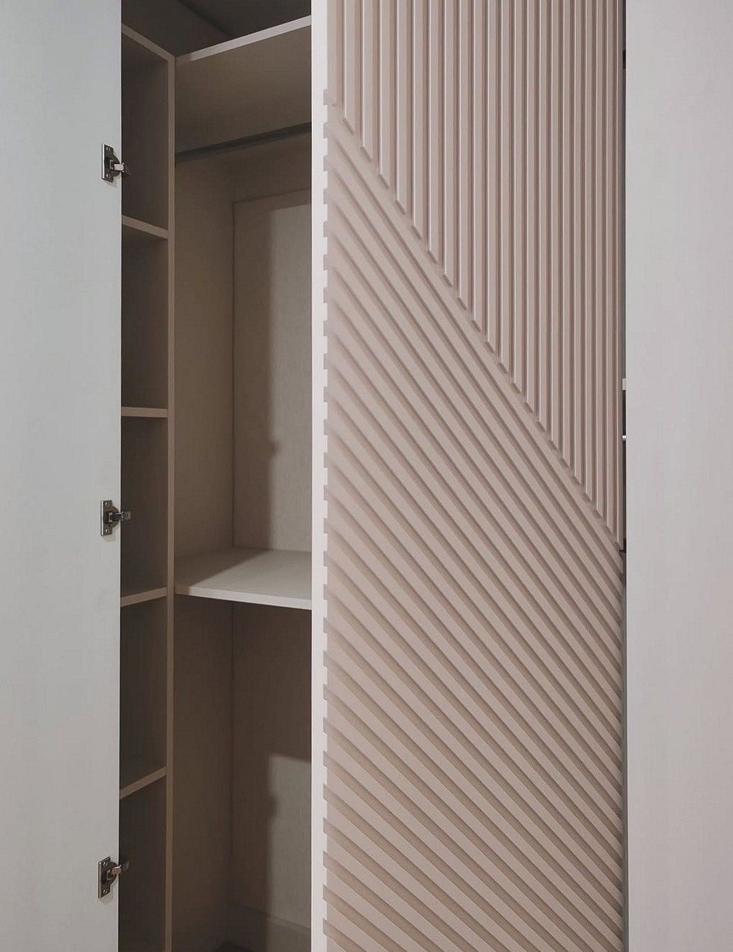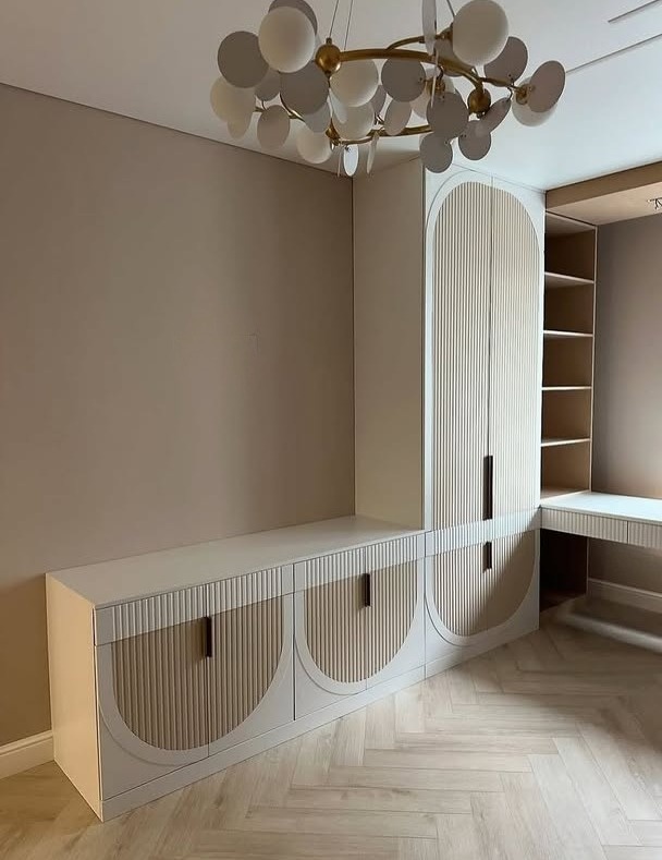 Встроенный шкаф с фрезеровкой и открытыми полками «Модель 63»