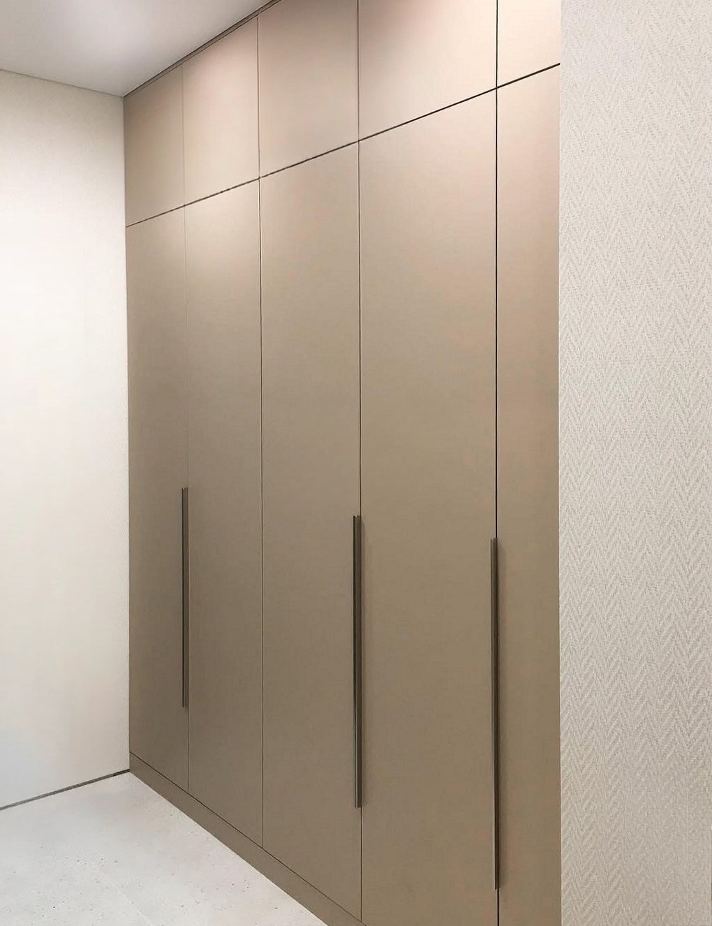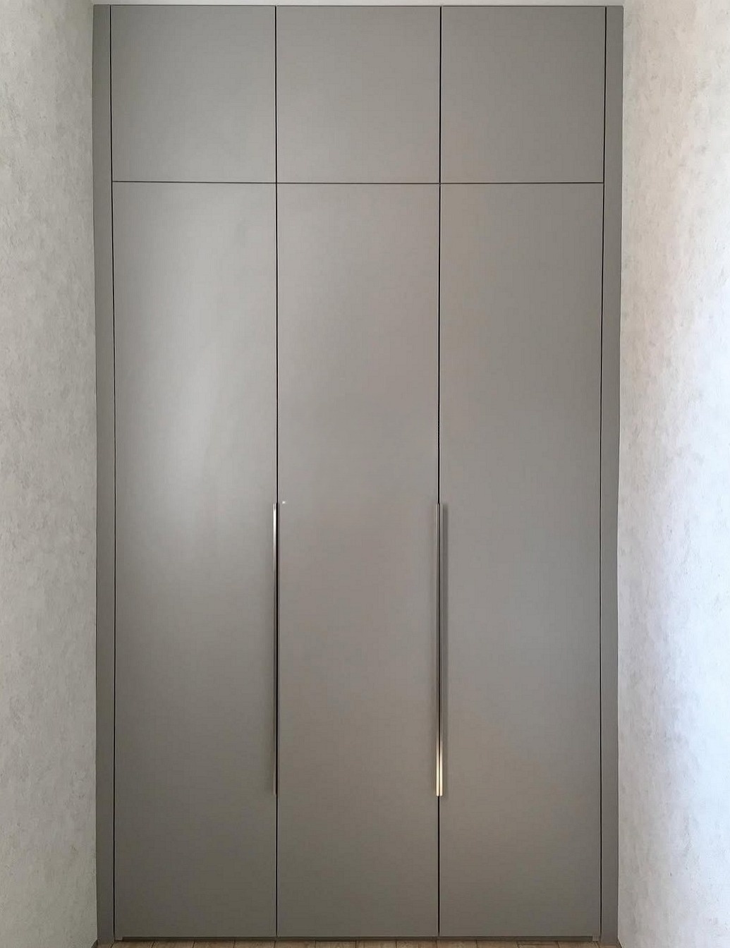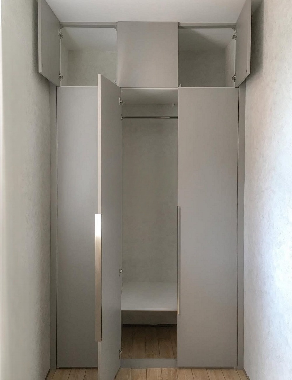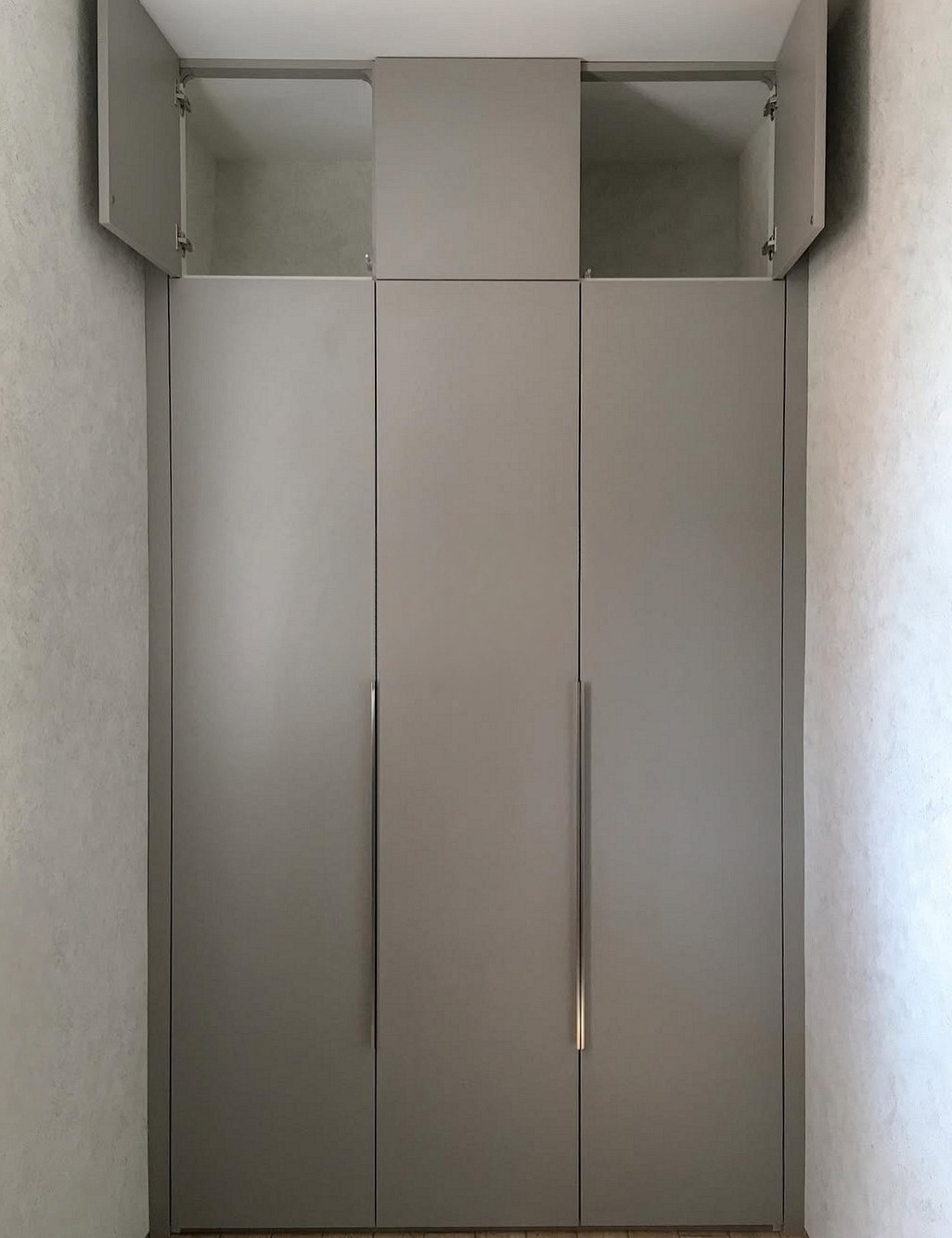 Встроенный в нишу серый шкаф с антресолью «Модель 741»