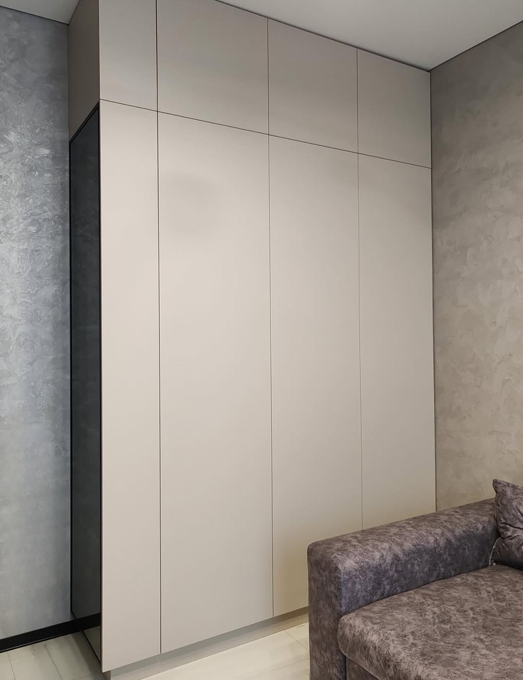 Большой встроенный распашной шкаф серого цвета из ЛДСП «Модель 434»