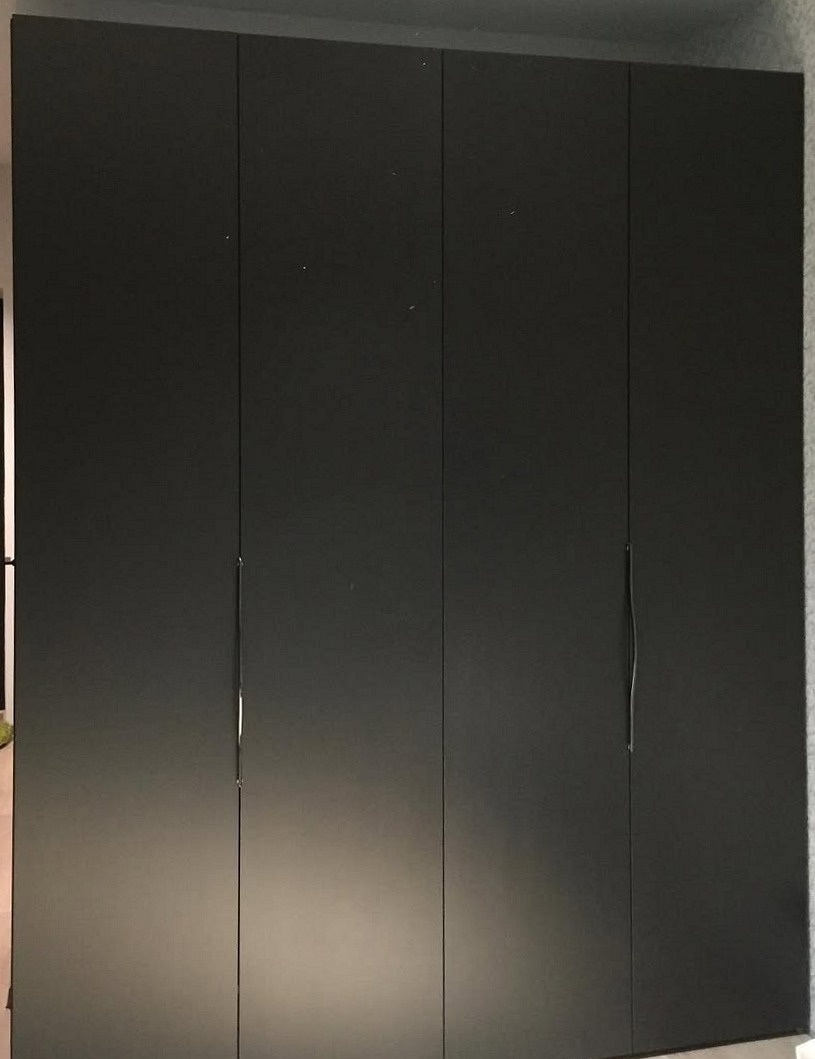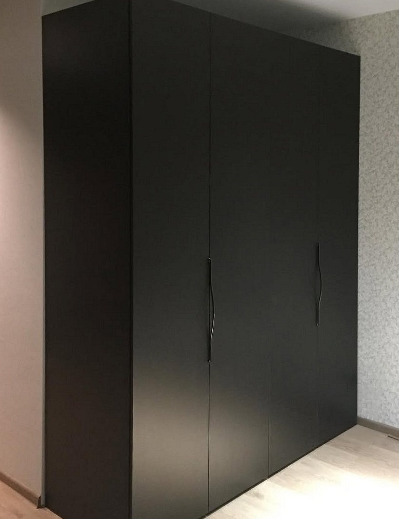 Широкий распашной черный шкаф с диагональными ручками «Модель 1294»