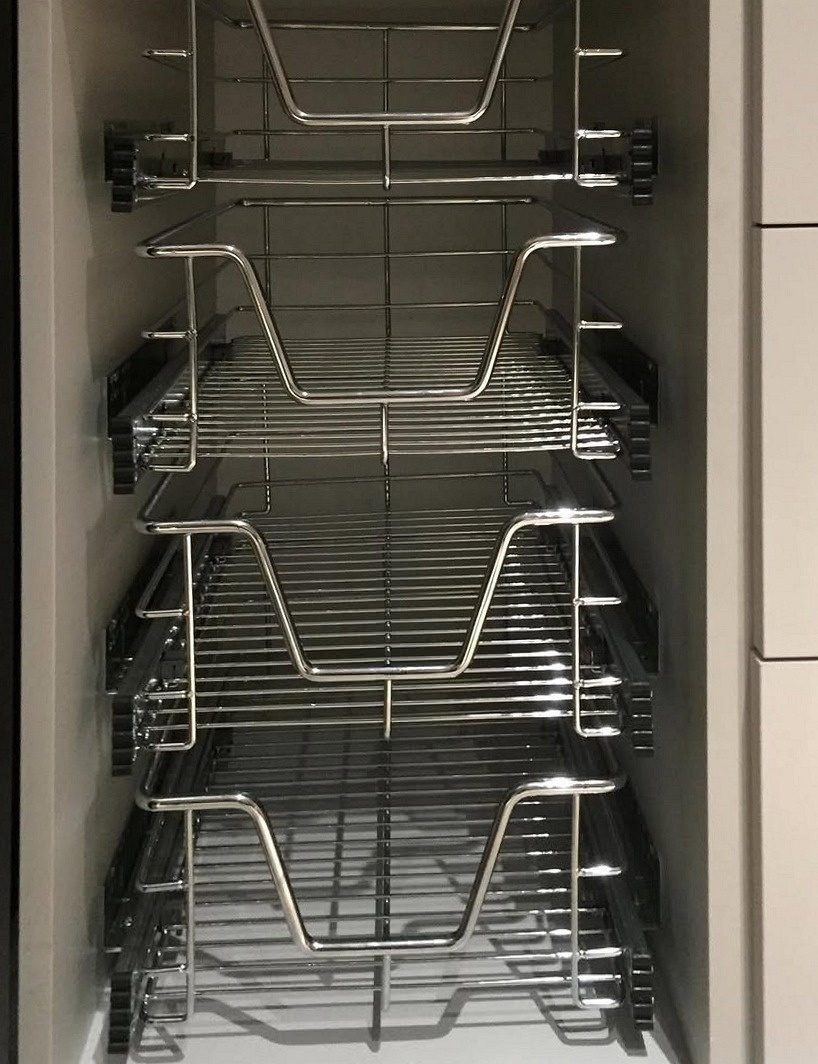 Высокий шкаф серого цвета с фрезерованными дверями в санузел «Модель 1033»