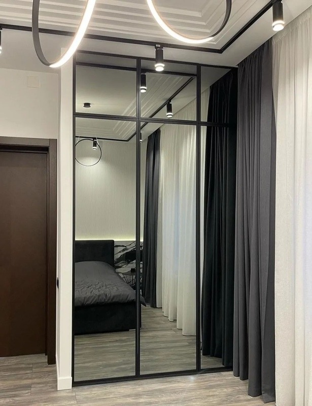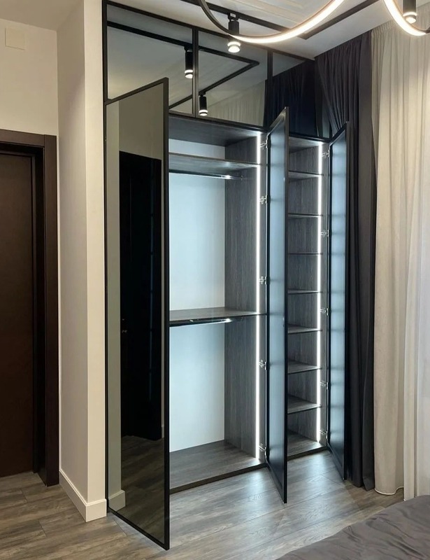 Угловой шкаф с тонированным зеркалом и черным профилем «Модель 590»