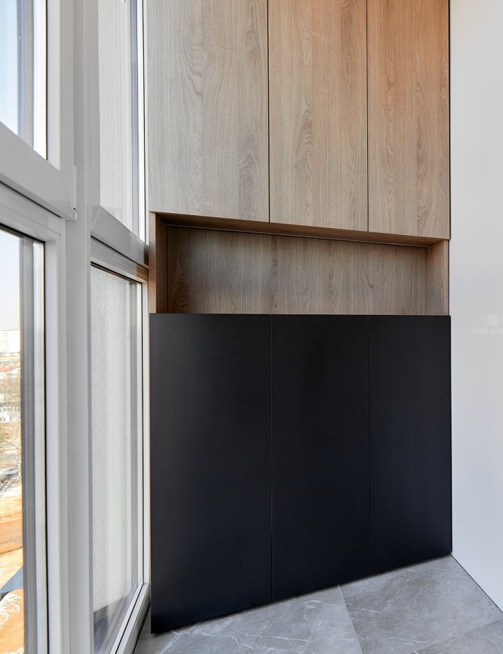Комбинированный встроенный шкаф из ЛДСП на балкон «Модель 981»