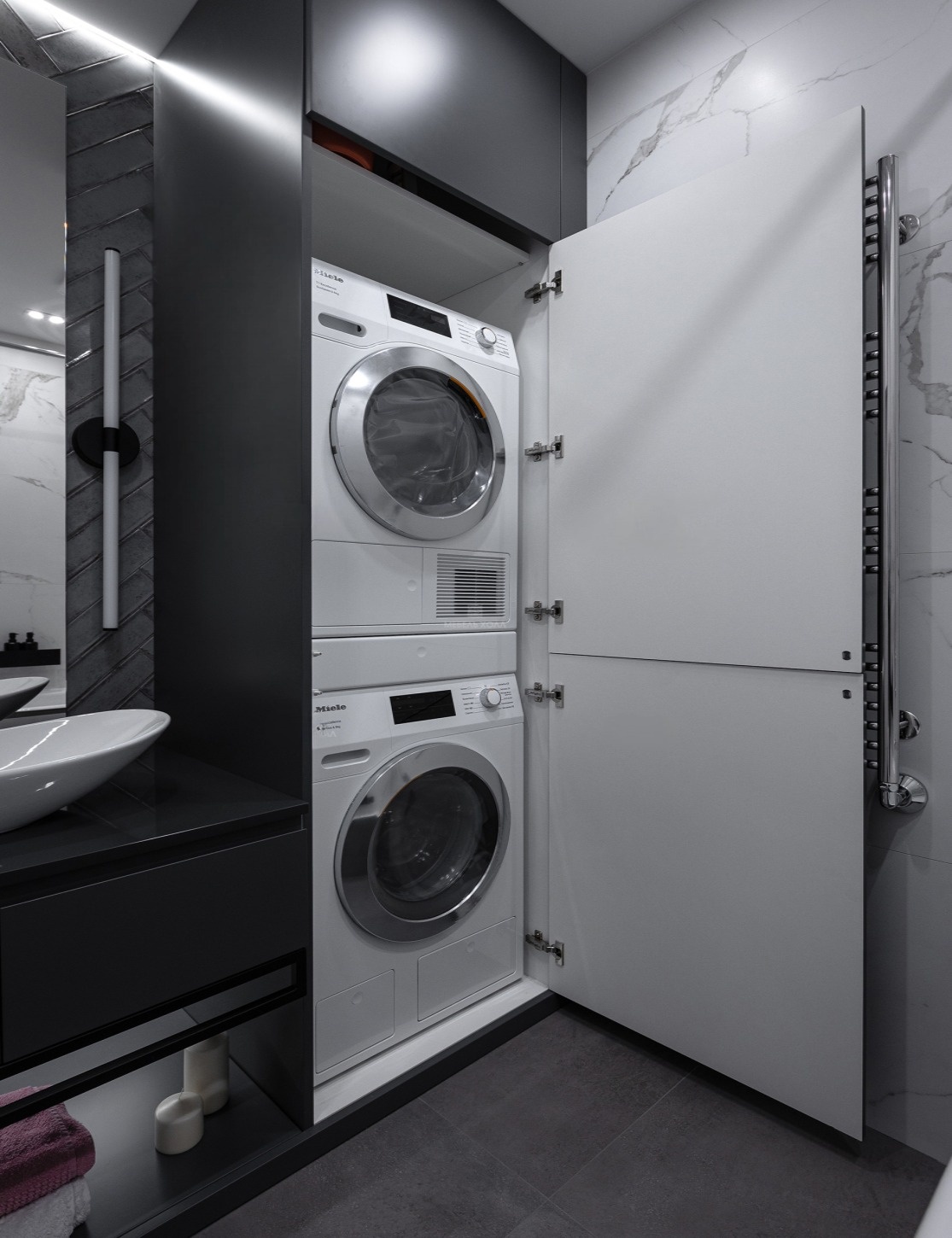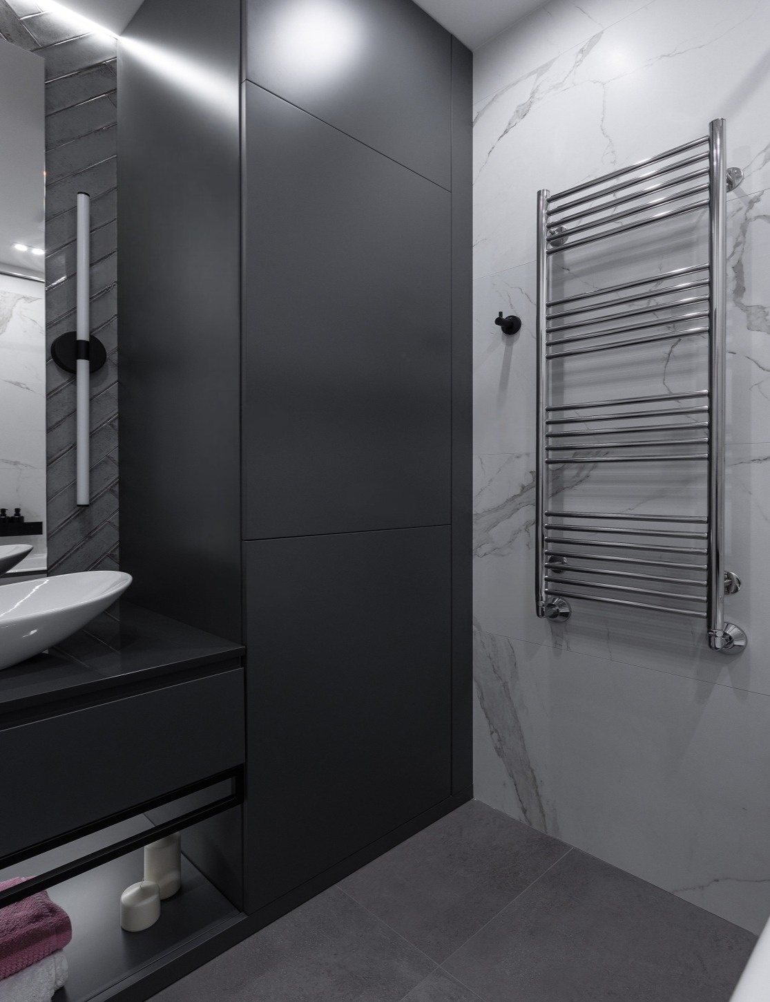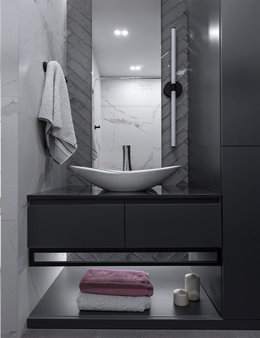 Небольшой встроенный шкаф черного цвета в ванную «Модель 935»