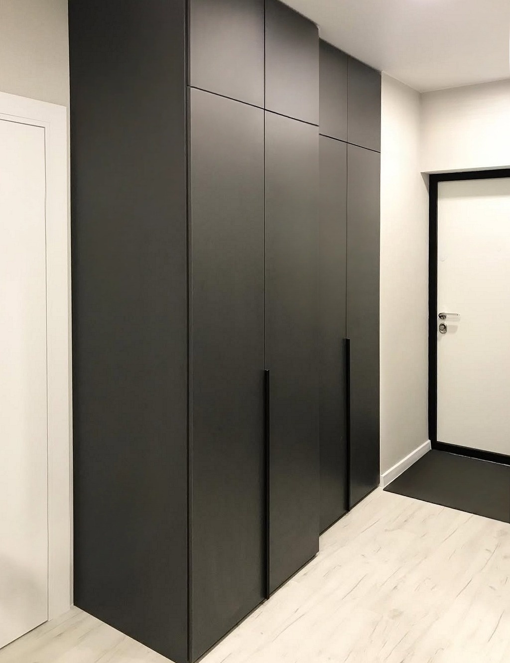 Встроенный в прихожую шкаф черного цвета из ЛДСП «Модель 465»