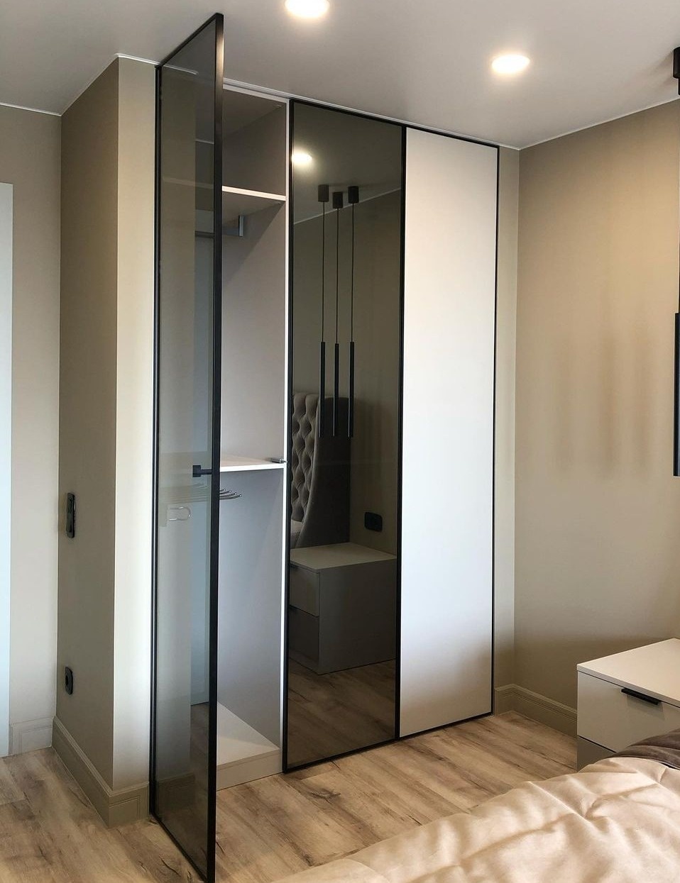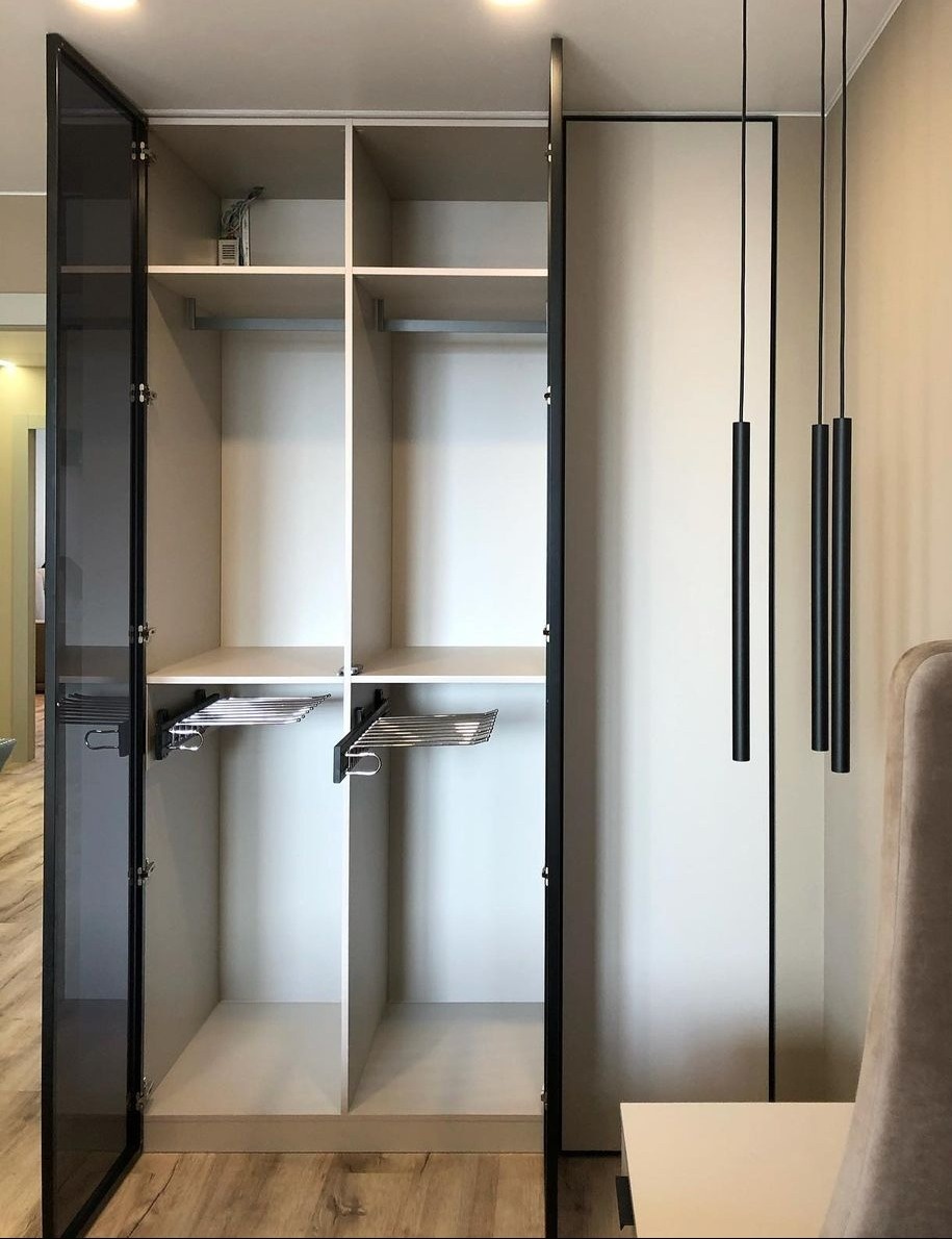Черный гардеробная с тонированными стеклянными дверями-купе «Модель 601»