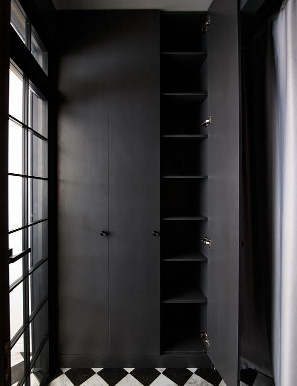 Встраиваемый черный шкаф-гардеробная «Модель 1258»