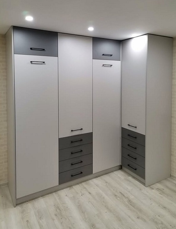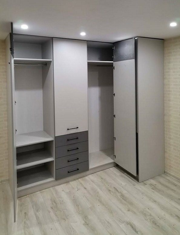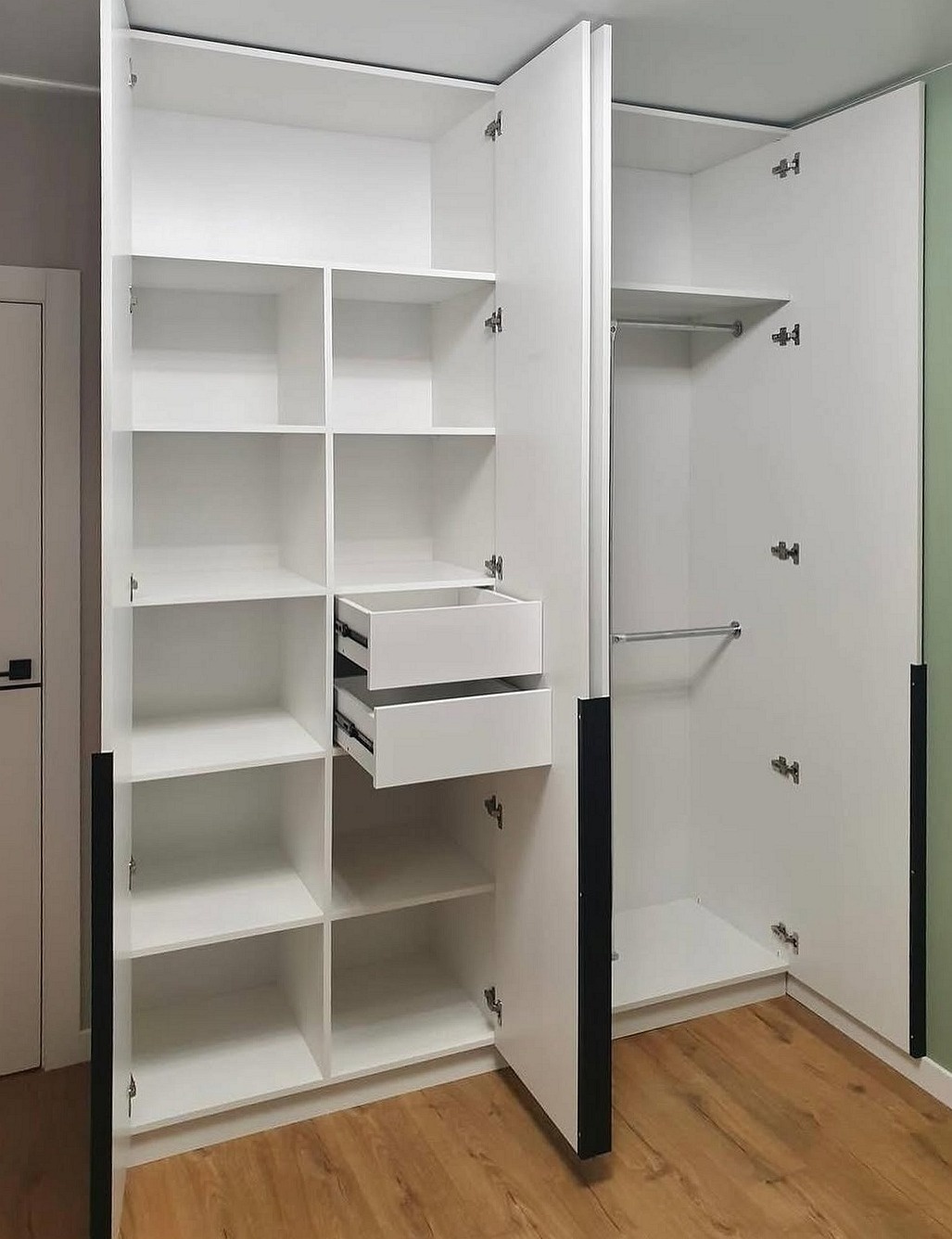 Встроенный угловой шкаф с антресолью на заказ «Модель 300»